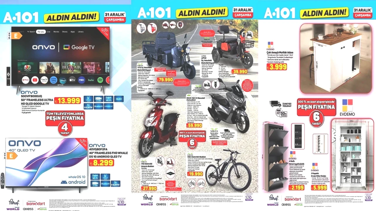 A101 Aktüel ürünleri şimdi satışta! 16 Nisan Perşembe itibarıyla "Aldın Aldın" kampanyasıyla, televizyondan kamp ekipmanlarına, beyaz eşyalardan 23 Nisan’a özel oyuncaklara kadar birçok ürün indirimli fiyatlarla sizi bekliyor. Haftanın en dikkat çekici fırsatlarını keşfedin!